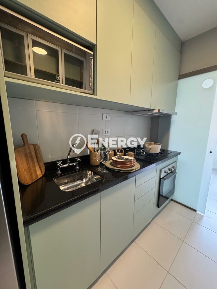 Excelente apartamento para venda ou locação finamente mobiliado e decorado com 70m², pronto para entrar e morar. Ótima distribuição, living amplo para dois ambientes, sala de TV com amplo sofá retrátil de três metros de largura muito confortável mais TV de 42 ", Sala de jantar com mesa para quatro pessoas. Cozinha integrada com o living já com armários planejado e equipada com bancada em mármore preto e cuba dupla, geladeira, fogão e micro-ondas em aço inox e um espaço gourmet com churrasqueira de pedras vulcânicas Brastemp, máquina de lavar e secar roupas LG. Dois dormitórios sendo uma suíte, suíte com cama box queen size, armário embutido, smartv 40", banheiro privativo com janela grande, o dormitório já está com duas camas de solteiro box baú com criado mudo suspenso para poder unir as camas e ficar como queen sinze de acordo com a necessidade e armário embutido. Ar condicionado em todos os ambientes. Condomínio com lazer completo.Ótima localização, próximo de comércios, serviços e das principais vias de acesso.13/04/2023