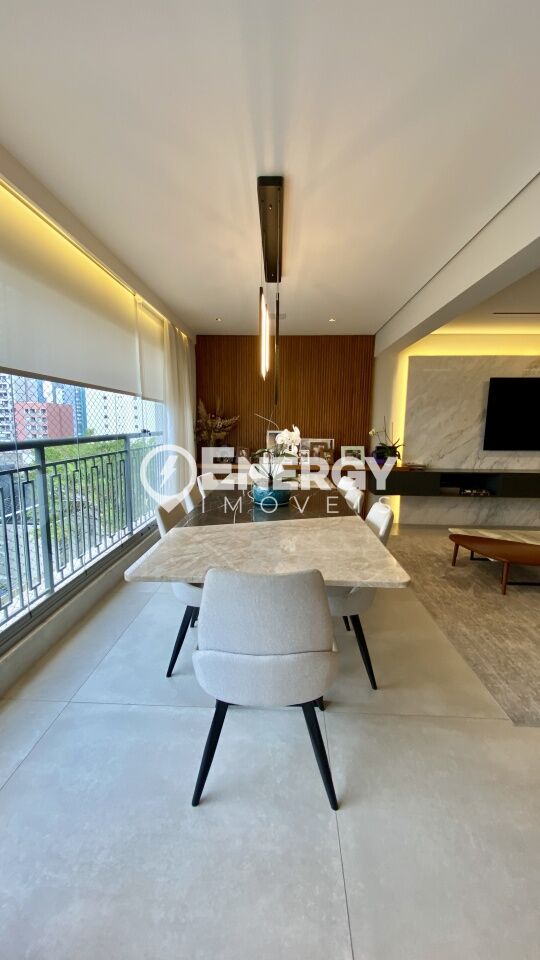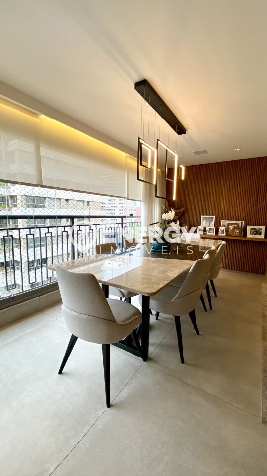 Apartamento de alto padrão, mobiliado, com 149m², terraço, 3 suítes e 2 vagas.